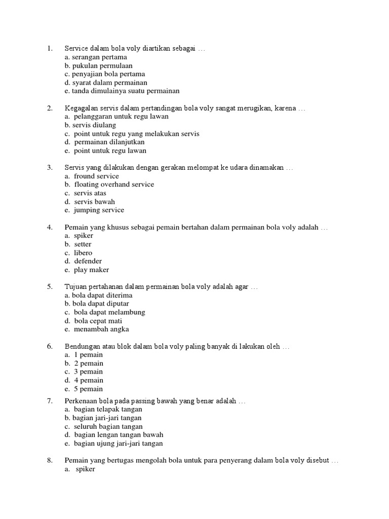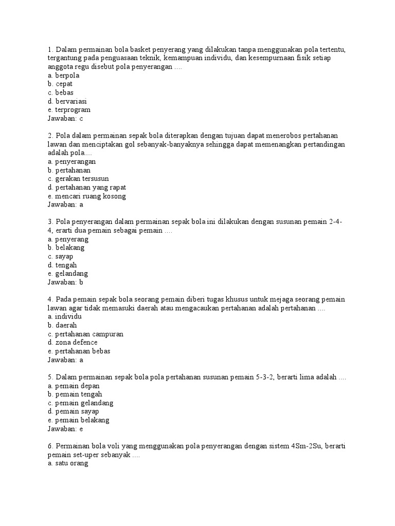 Jelaskan yang dimaksud taktik pertahanan dalam permainan bola voli! Jelaskan pengertian pegangan inggris dalam permainan bulu tangkis! Pola penyerangan adalah suatu siasat yang di pergunakan dalam suatu pertandingan untuk meraih kemenangan secara sportif. Dalam buku menjadi pemain bola voli andal (2011) karya reni sulastriani menjelaskan tentang tiga jenis teknik pertahanan dalam bola voli. Alasan = jawaban yang paling tepat dengan adanya pertahanan dalam permainan bola voli adalah agar bola dapat melambung sehingga bola tidak mati/jatuh di area sendiri dan akhirnya musuh tidak mendapatkan point/angka. Pola penyerangan dalam permainan bola voli merupakan siasat yang digunakan setiap tim untuk memperoleh point dengan tujuan untuk memperoleh kemenangan sedangkan pertahanan dalam permainan bola voli adalah upaya untuk bertahan dalam keadaan pasif menerima serangan dengan harapan tim lawan akan melakukan kesalahan dan akhirnya mengalami kekalahan. Seseorang yang hobi bermain bola voli akan membuat tubuhnya selalu dalam kondisi prima dan memiliki stamina yang kuat. Hampir pada semua jenis permainan bola besar pasti menggunakan taktik pola penyerangan dan pola pertahanan, karna emang seharusnya kita dituntut untuk menghasilkan point yang lebih banyak tentunya untuk memenangkan pertandingan. Taktik bertahan harus mempunyai prinsip, supaya dapat menyerang kembali regu lawan. Sama halnya dengan tujuan olahraga pencak silat, permainan bola voli juga memiliki tujuan untuk menjaga kesehatan tubuh.seseorang yang hobi bermain bola voli akan membuatnya tubuhnya selalu dalam kondisi prima serta memiliki stamina yang kuat sehingga tidak heran meskipun ia memiliki kegiatan atau aktivitas yang padat, ia masih terlihat segar dan tidak letih. Menganalisis, merancang, dan mengevaluasi taktik dan strategi dalam permainan bola voli 1. Taktik dan strategi penyerangan dalam permainan bola voli tujuan pokok permainan bola voli adalah mendapatkan angka akhir lebih dahulu dari lawan. Seperti halnya dalam sepak bola dikenal istilah kiper hingga striker olahraga bola voli juga mengenal 4 pemain sesuai dengan posisi maupun fungsinya yaitu.