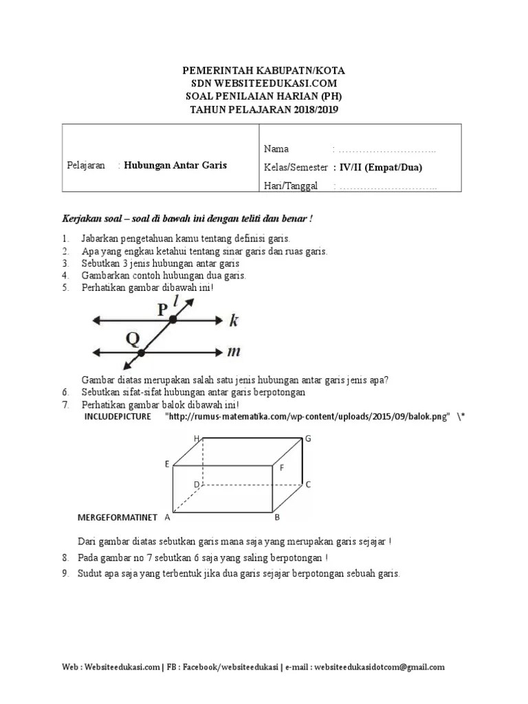 Dua buah garis dikatakan bersilangan, jika keduanya tidak sejajar dan tidak berpotongan. Garis sejajar adalah suatu kedudukan dua garis pada bidang datar yang tidak mempunyai titik potong walaupun kedua garis diperpanjang. Kalian sudah paham mengenai posisi garis terhadap sumbu x dan . Sudut apa saja yang terbentuk jika dua garis sejajar berpotongan sebuah garis. Garis berpotongan adalah 2 garis . Dalam ilmu matematika, kedudukan dua garis dapat berupa garis sejajar, garis berpotongan, garis bersilangan, dan garis berimpit. Garis sejajar adalah 2 garis yang terletak dalam 1 bidang datar dan tidak akan bertemu/berpotongan walaupun diperpanjang. Sebutkan pasangan dua garis bersilangan lainnya. Misalnya saja benda yang menunjukan garis yang sejajar antara lain rel. Karena kedudukan dua garis yang mempunyai titik potong karena kedua garis saling bertemu. Dua garis dikatakan sejajar apabila kedua garis tersebut terletak pada satu bidang datar dan tidak akan pernah berpotongan jika kedua garis tersebut . Sedangkan benda yang menunjukkan garis berpotongan diantaranya .